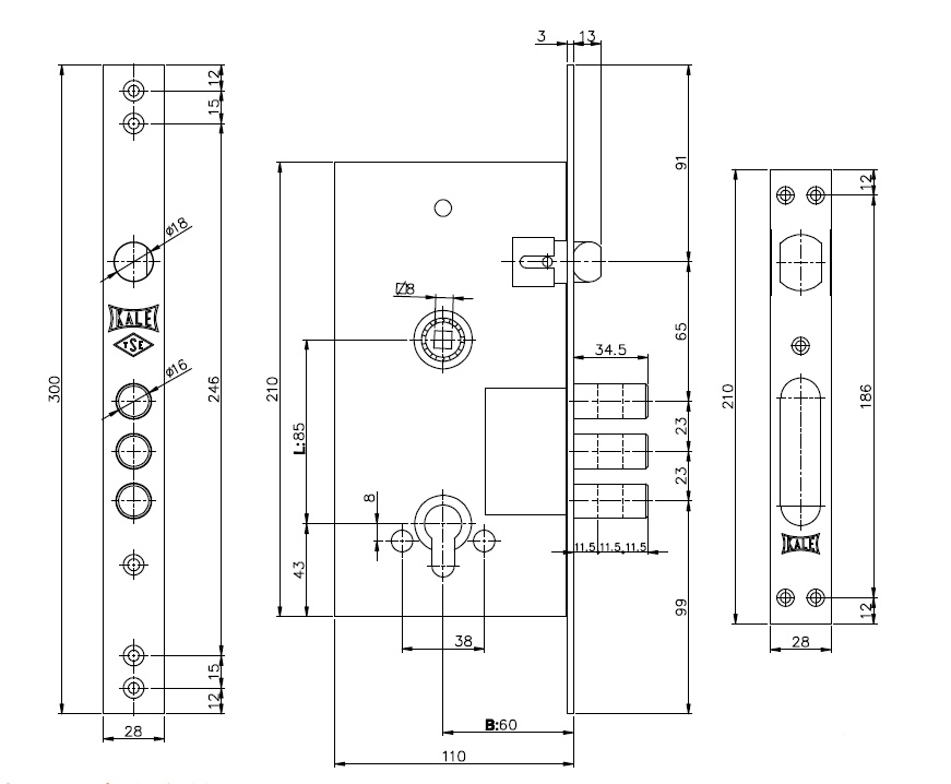 - Замок KALE 252 R має збільшену товщину корпусу, що дозволяє віднести його до посилених замків